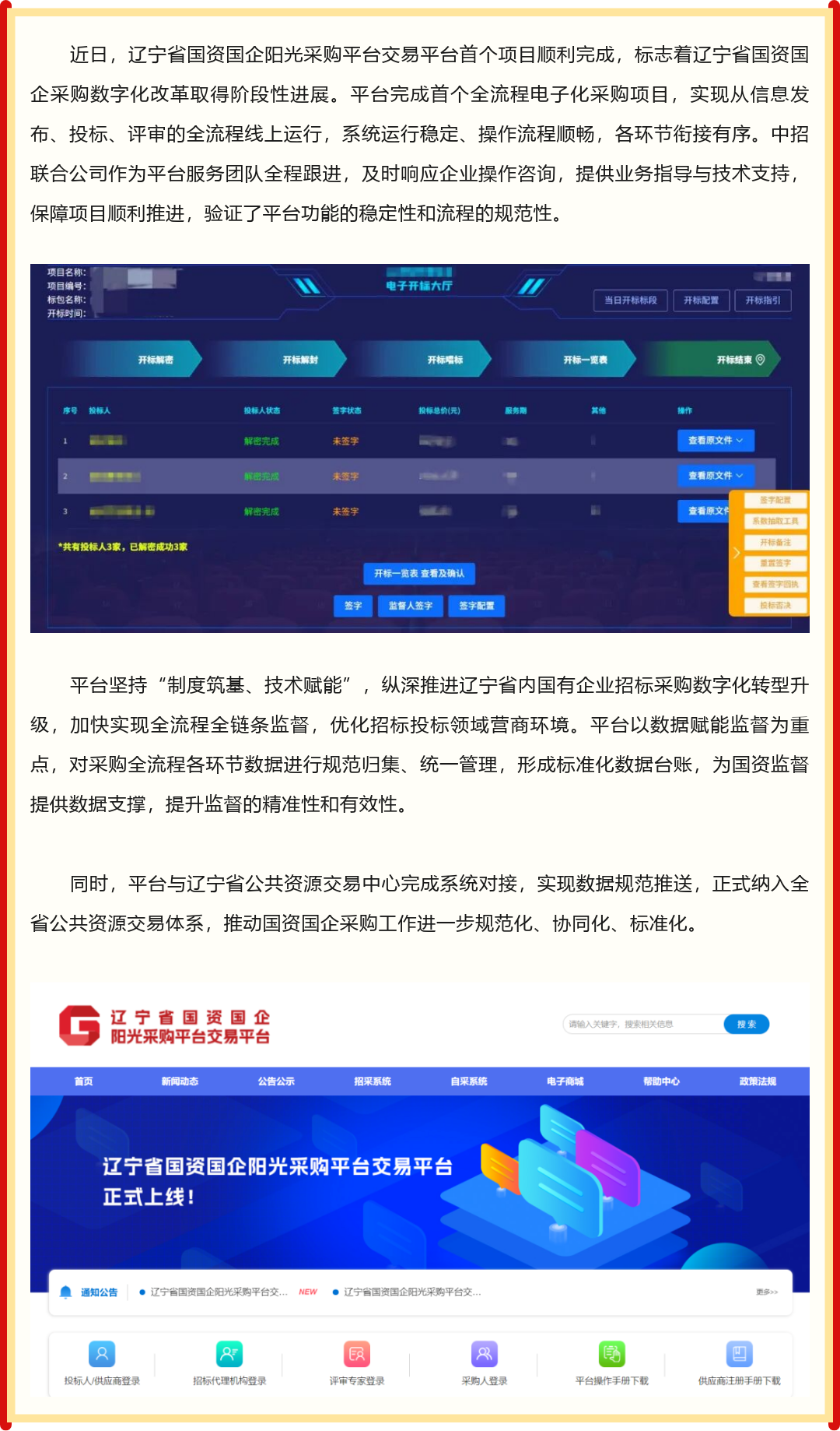 辽宁省国资国企阳光采购平台交易平台 首个项目顺利完成