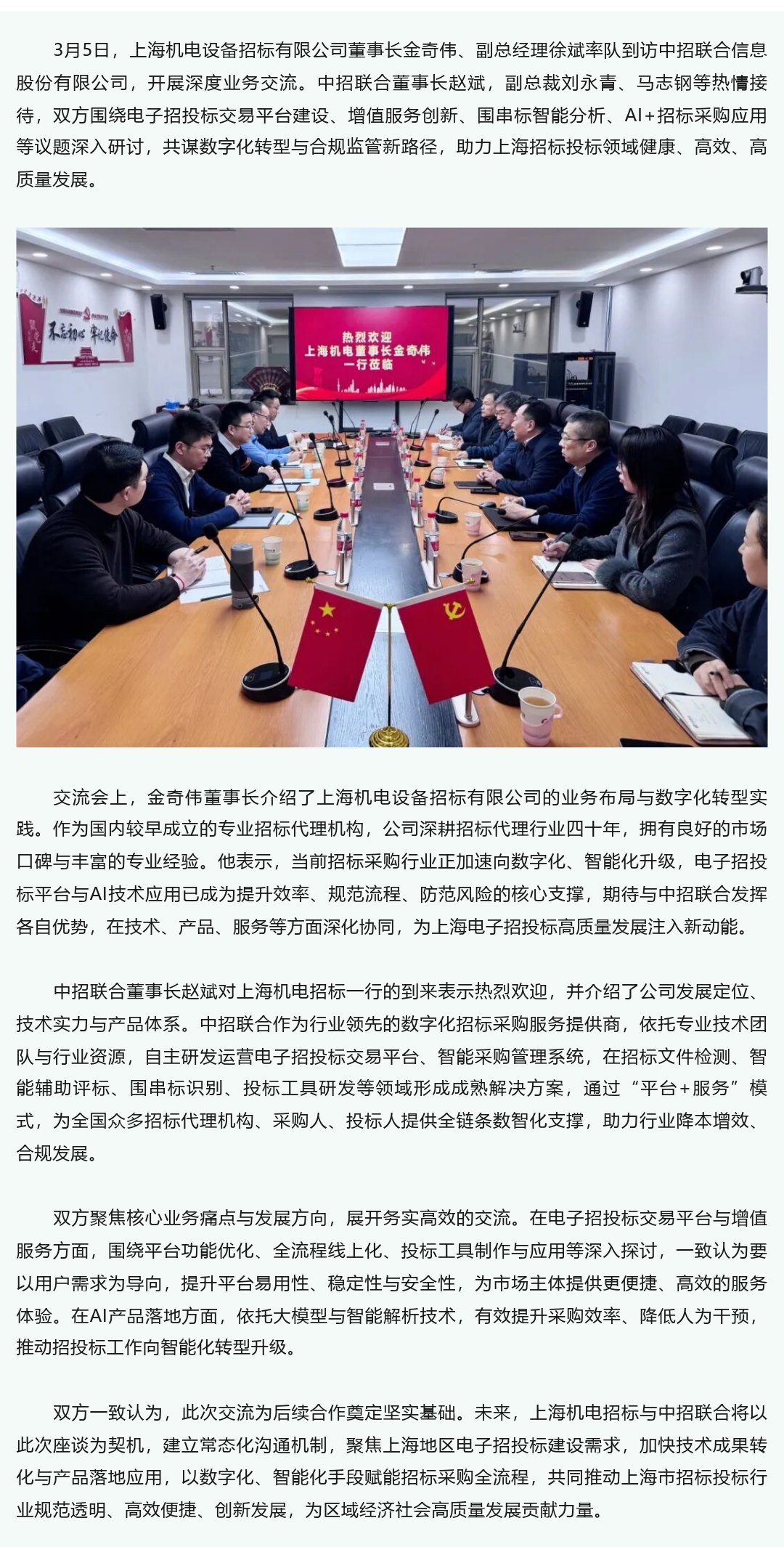 上海机电招标到访中招联合 共助上海电子招投标高质量发展